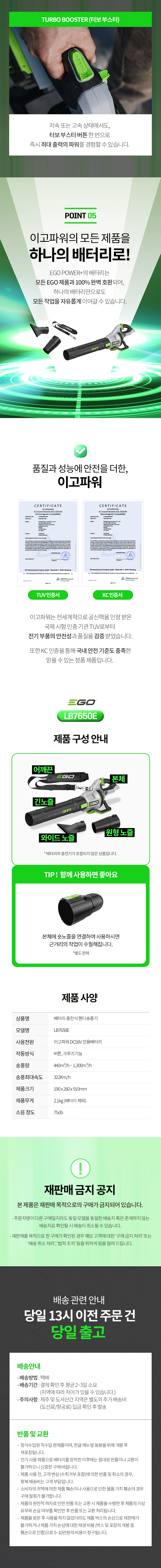 EGO브랜드/배터리용/송풍기/LB7650E