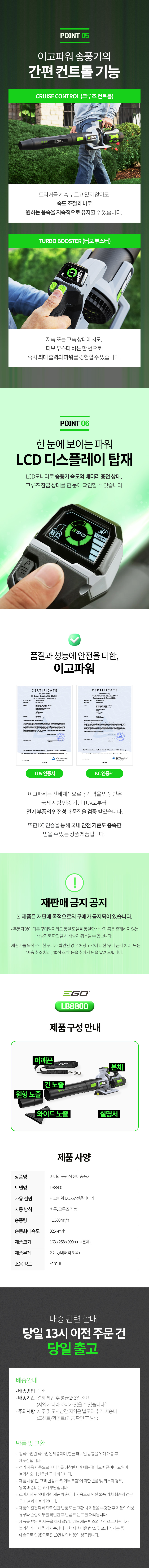 EGO브랜드/배터리용/송풍기/LB8800E