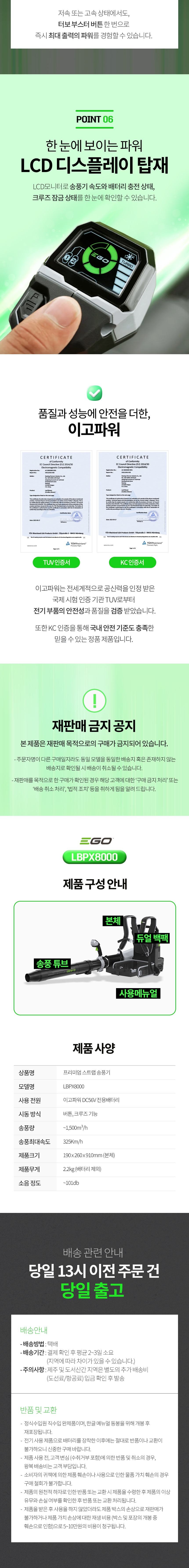 EGO브랜드/배터리용/송풍기/LBPX8000