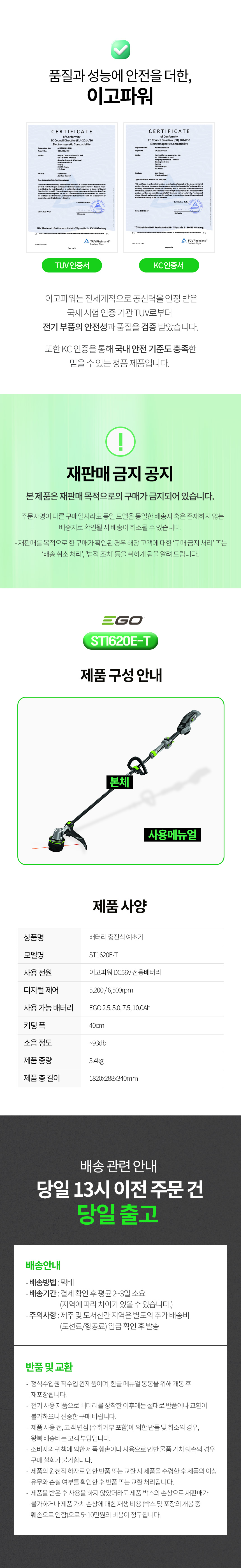 EGO브랜드/배터리용/예초기/ST1620E-T