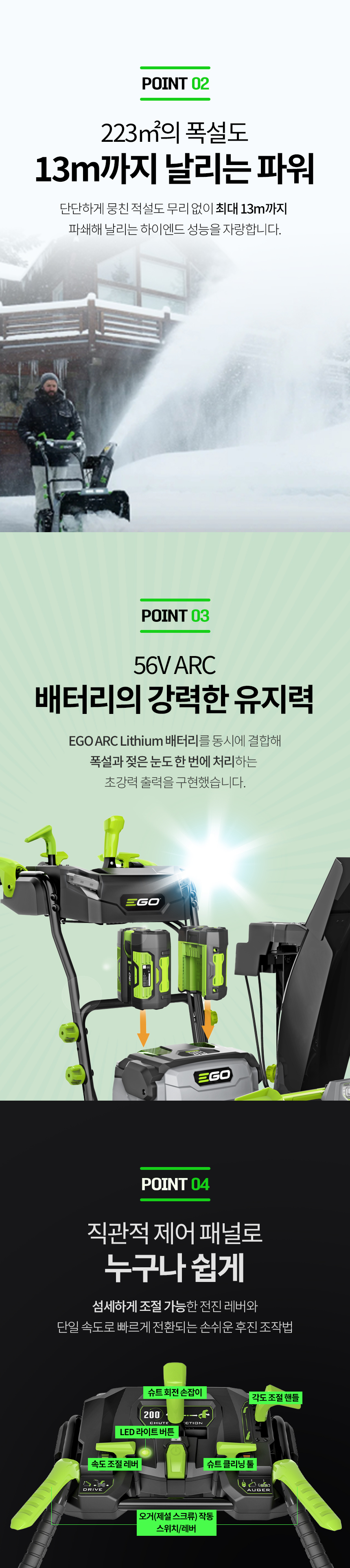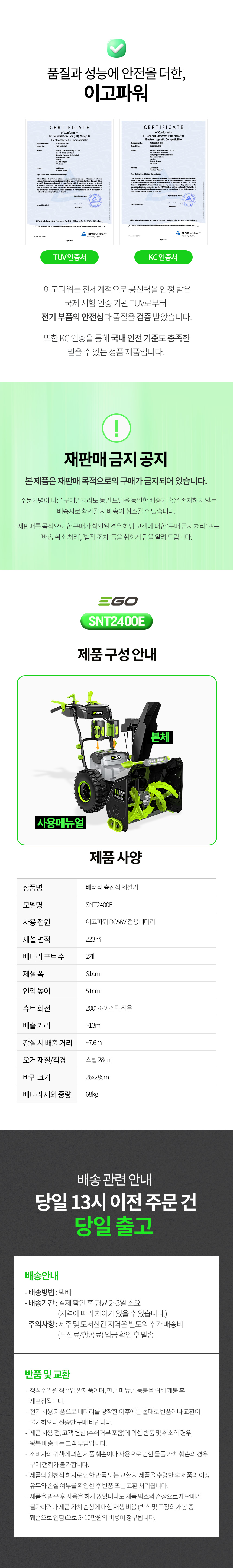 EGO브랜드/배터리용/제설기/SNT2400E